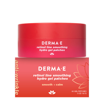Derma E Retinol Line Smoothing Hydro Gel Patches target crow's feet, eye wrinkles, fine eye lines, and collagen production with a gentle yet effective blend of Retinol and Bakuchiol, a retinol alternative. Derma E retinol eye patches are infused with soothing Rose Water and calming Hibiscus Flower Petals; these hydro gel retinol patches for the eyes deeply hydrate and refresh the under-eye area for a youthful, radiant appearance.