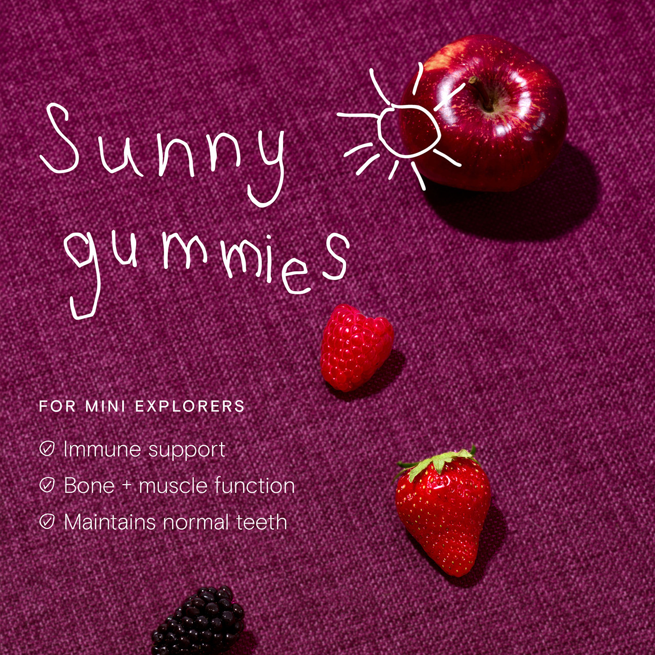 - Delicious forest fruits flavoured gummies for kids, making daily supplementation enjoyable for children