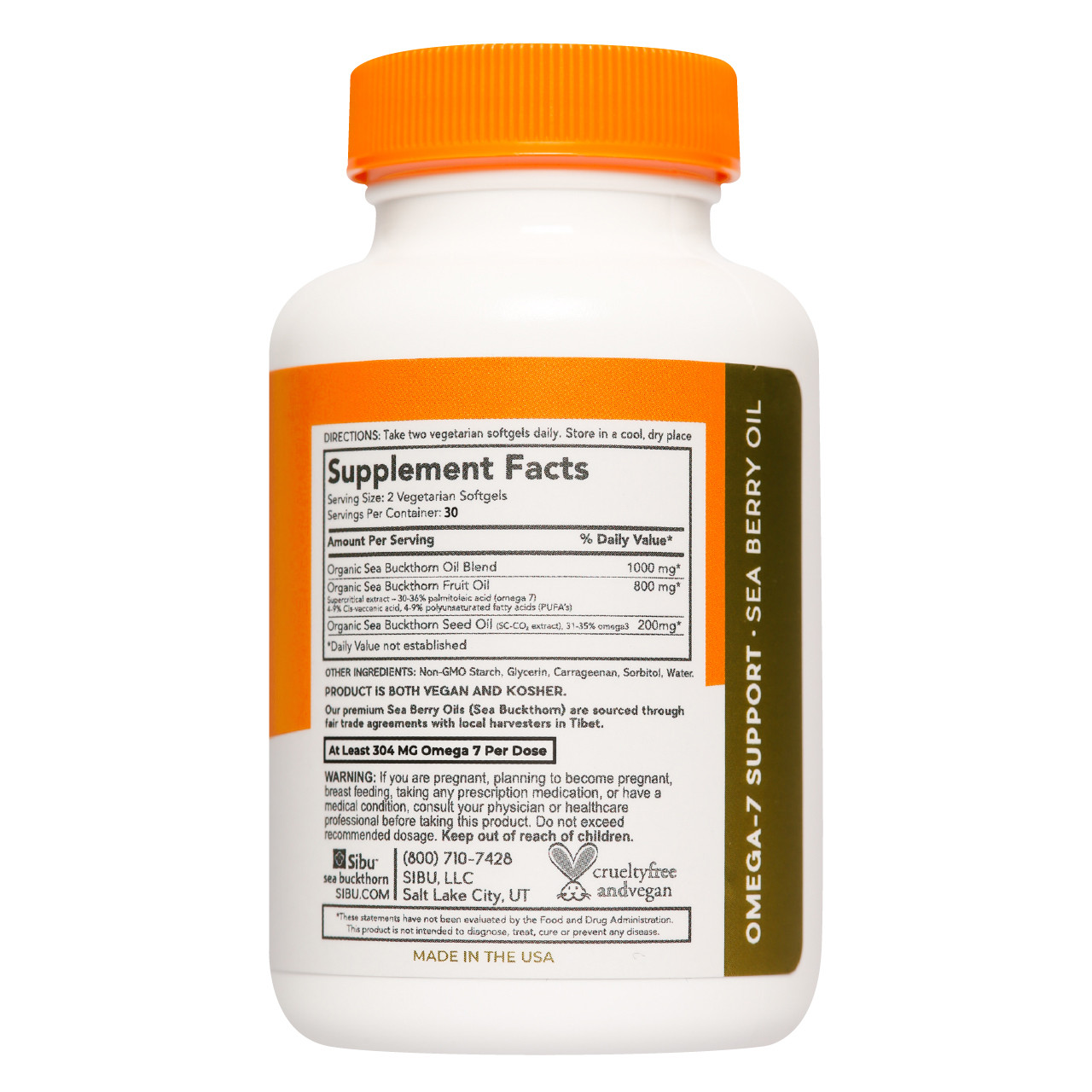 Sibu Omega-7 supplement contains no dairy, wheat, gluten, sodium, yeast or preservatives.