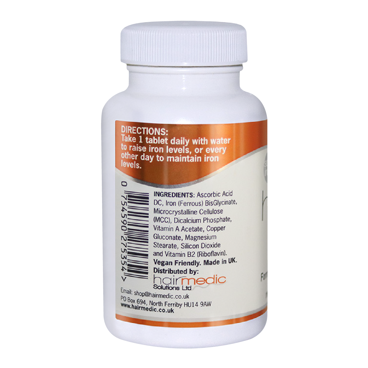 HairMedic HairIron is a iron supplement for hair loss that contains Iron Bisglycinate, which is a non-constipating, easy-to-digest form of iron that is designed to treat thinning hair caused by a low level of iron.