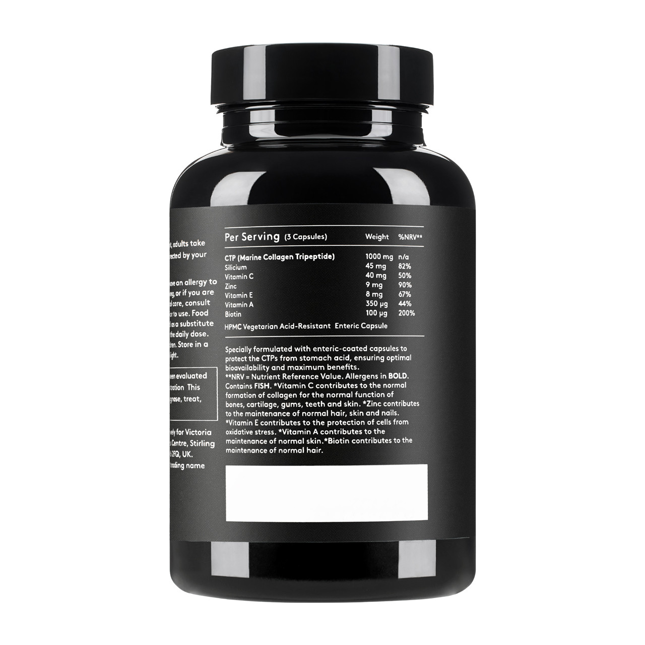 - Advanced Delivery System: Specially formulated with enteric-coated capsules, which protect the collagen tripeptides (CTPs) from stomach acid, allowing them to reach the bloodstream in their optimal form