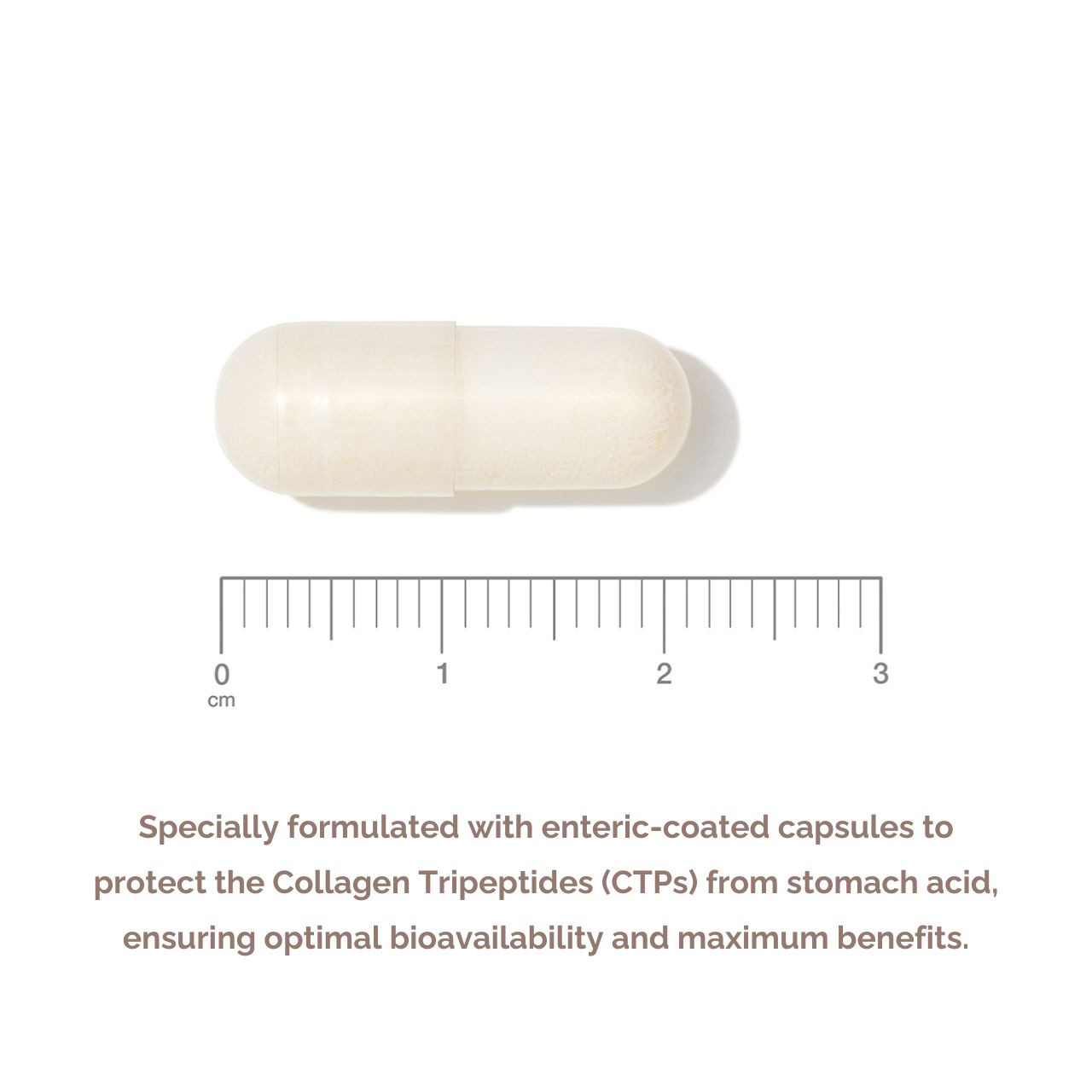 The enteric coated capsules protect the CTPs from the acid in the stomach which can degrade this type of collagen. Additionally, by preventing the capsule from dissolving in the stomach, this reduces the likelihood of stomach discomfort, bloating, or irritation that some people experience with regular collagen supplements. This makes enteric-coated CTPs an excellent option for individuals with sensitive digestive systems.
