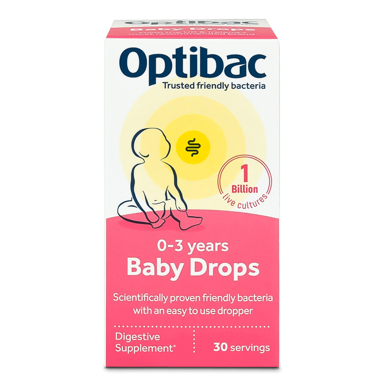 Live cultures are very safe for babies (1,2). You don’t need to worry about ‘overdosing’, but there’s no reason to use more than they need. Optibac Baby Drops gives the recommended dose of 1 billion live cultures in just 8, easy-to-administer drops.